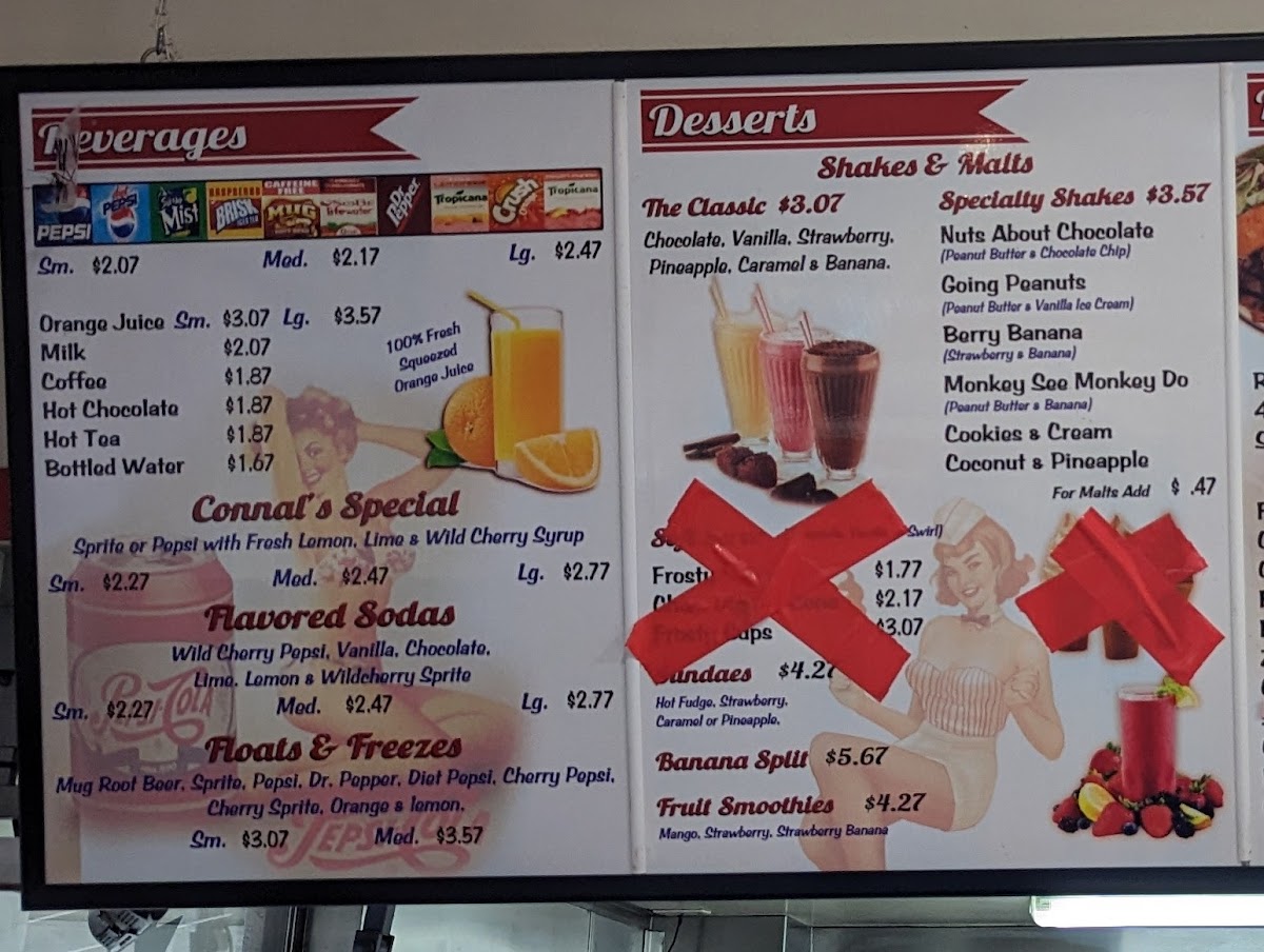 Welcome to Connal's Burgers Salads & Subs, a delightful gem located at 1226 W 7th St, Upland. This charming eatery captures the essence of a classic diner, reminiscent of the 50s, and offers an extensive menu that caters to all tastes. Start with their plethora of sandwiches, such as the mouth-watering Rib Eye Steak or the robust Philly Cheese Steak, each crafted with quality ingredients that promise immense flavor. The side orders, including crispy Onion Rings and Fried Zucchini, elevate the experience, making each meal a celebration of comfort food. Don’t overlook their indulgent Specialty Shakes, notably the Peanut Butter + Banana, a standout among desserts. Customers rave about the generous portions and friendly service, making Connal’s a preferred spot for delicious meals and delightful memories.